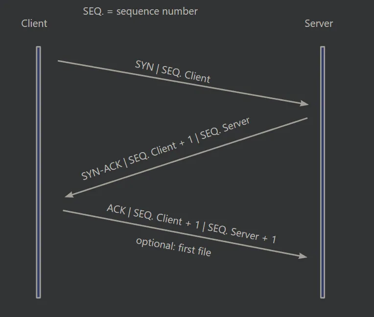客户端首先发送一个同步序列号(SYN)消息给服务器,服务端回复一个SYN-ACK消息,最后客户端再发送一个ACK确认消息给服务端,确认已经收到服务端发来的SYN-ACK消息